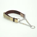 落ち着いたサンド系の色調のチョーカーです。犬の首に負担がかかりにくいハーフタイプのチョーカーです。