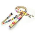 多彩なマルチカラーのボーダー柄のリードです。SサイズとMサイズともに持ち手の部分にバックルがあるのでリードをとめる時に便利です。