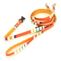 オレンジ色を基調とした夏の日差し想わせるボーダー柄のリードです。2020年春夏コレクションで2cm幅のMサイズを追加しました。XSサイズは超小型犬用に軽い金具を使用し、リードの長さが115cmになっています。SサイズとMサイズには持ち手の部分にバックルがあるのでリードをとめる時に便利です