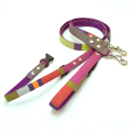 植物のマルベリーを想わせる色合いのベリー系の色とグリーンのボーダーのリードです。ベースには紫色を使用しました。SサイズとMサイズともに持ち手の部分にバックルがあるのでリードをとめる時に便利です。
