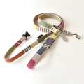 軽やかで優しい色合いのフリージアを思わせるマルチボーダー柄のリードです。SサイズとMサイズともに持ち手の部分にバックルがあるのでリードをとめる時に便利です。