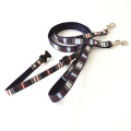 ボーダー柄のデニム素材を使用したアクティブ感覚のリードです。SサイズとMサイズともに持ち手の部分にバックルがあるのでリードをとめる時に便利です。