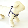 青い小さな花柄のリバティプリントを使用したハーネスです。超小型犬用に軽いバックルを使用しています。