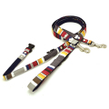 サンセットを想わせる色合いのボーダーのリードです。SサイズとMサイズともに持ち手の部分にバックルがあるのでリードをとめる時に便利です。