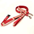 落ちついた赤と生成色のベーシックなボーダー柄のリードです。SサイズとMサイズともに持ち手の部分にバックルがあるのでリードをとめる時に便利です。
