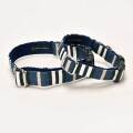シンプルですっきりしたネイビーブルーベースのボーダー柄のカラーです。Sサイズは1.5cm幅と2cm幅の2種類からお選びいただけます。