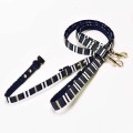 シンプルですっきりしたネイビーブルーベースのボーダー柄のリードです。SサイズとMサイズともに持ち手の部分にバックルがあるのでリードをとめる時に便利です。
